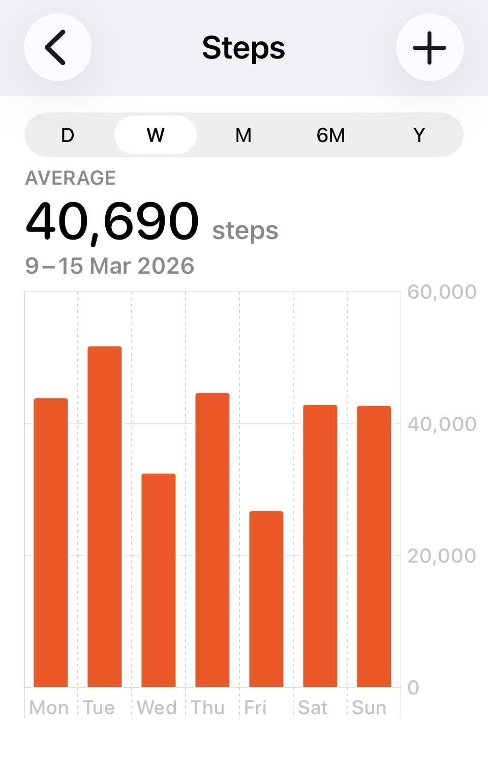 We’ve been here a week, and the time has flown by. Jo is working extremely hard on a paper which is nearing the submission deadline, and I’m walking. And to prove the latter, here’s my average daily step count for the past week!