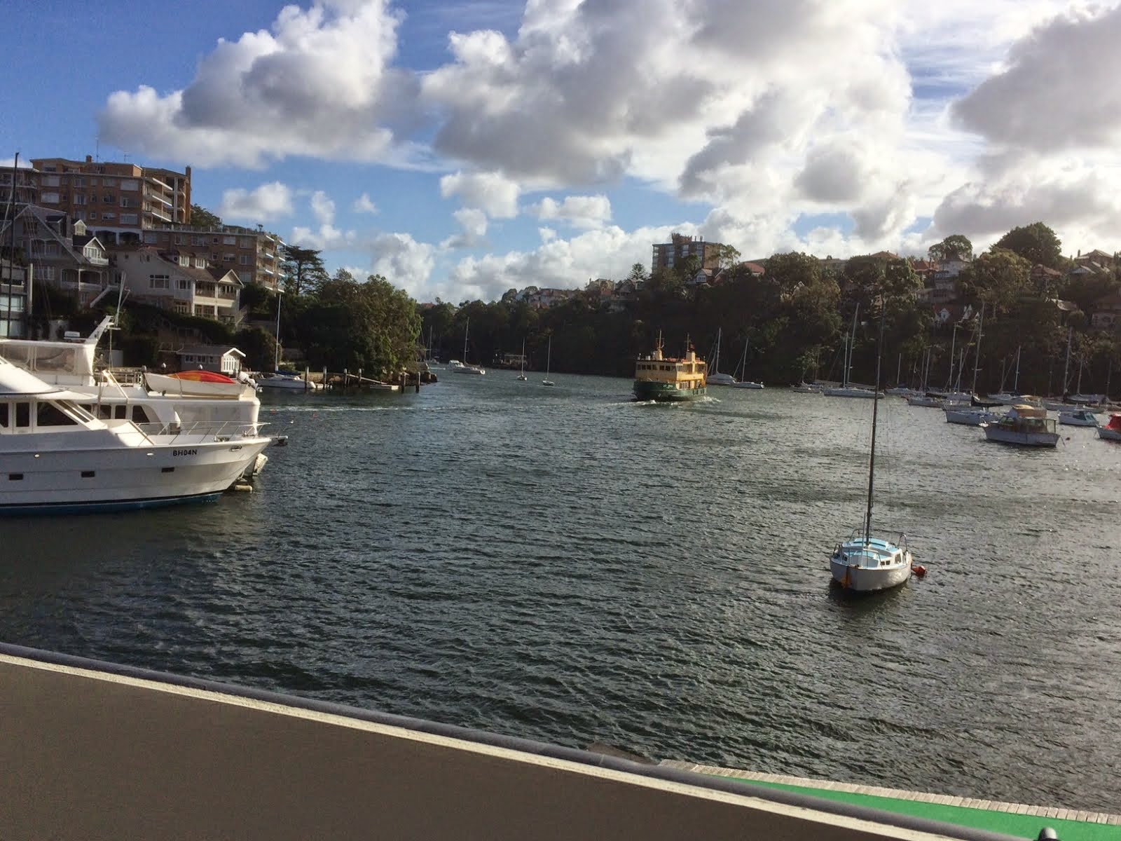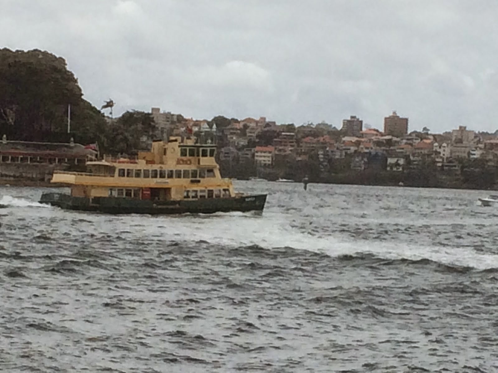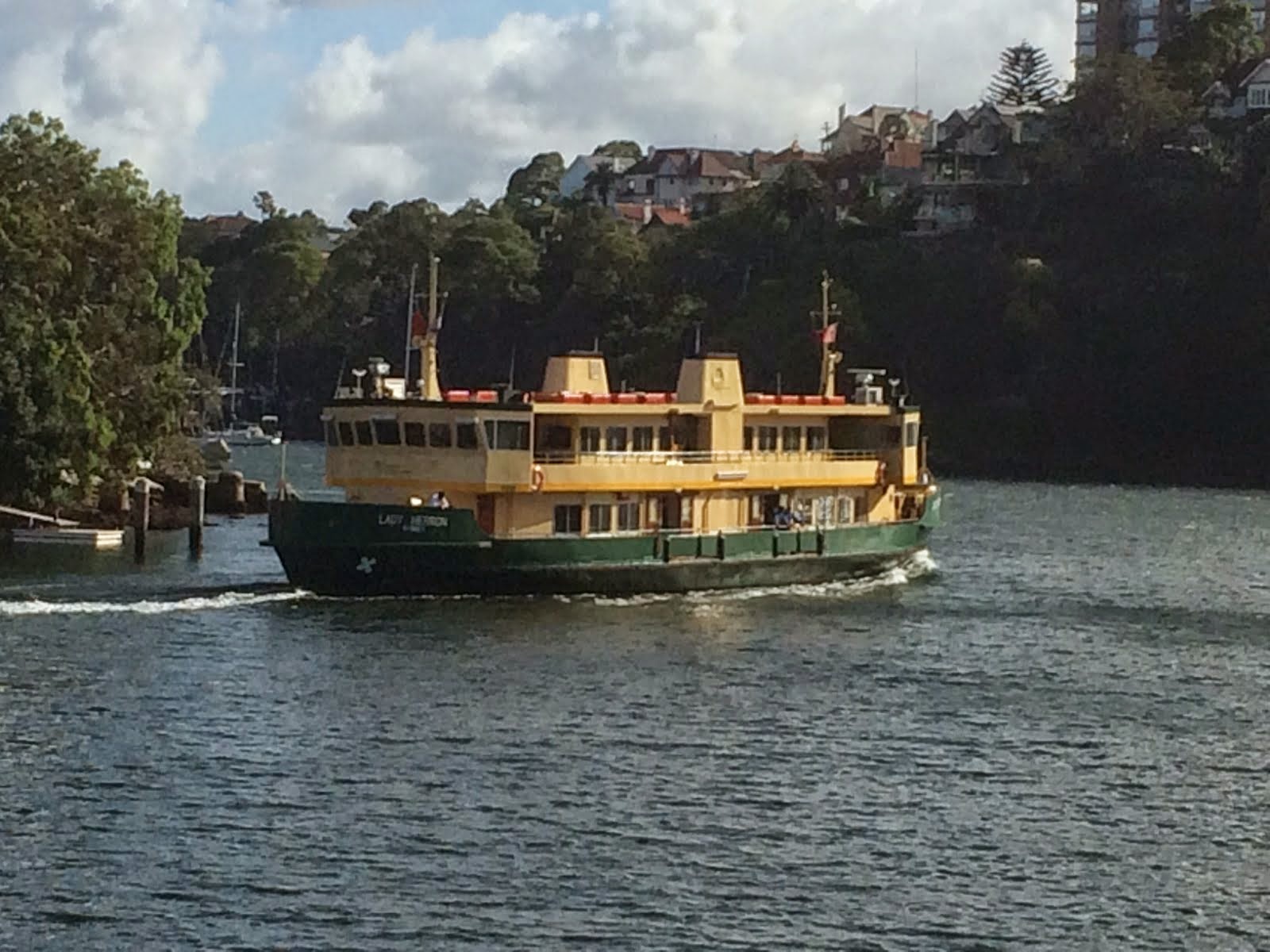 Decided not to climb the bridge, so had lunch and came back to Cremorne Point for a walk and tea at Mosman. Here’s our ferry – again, what a commute.